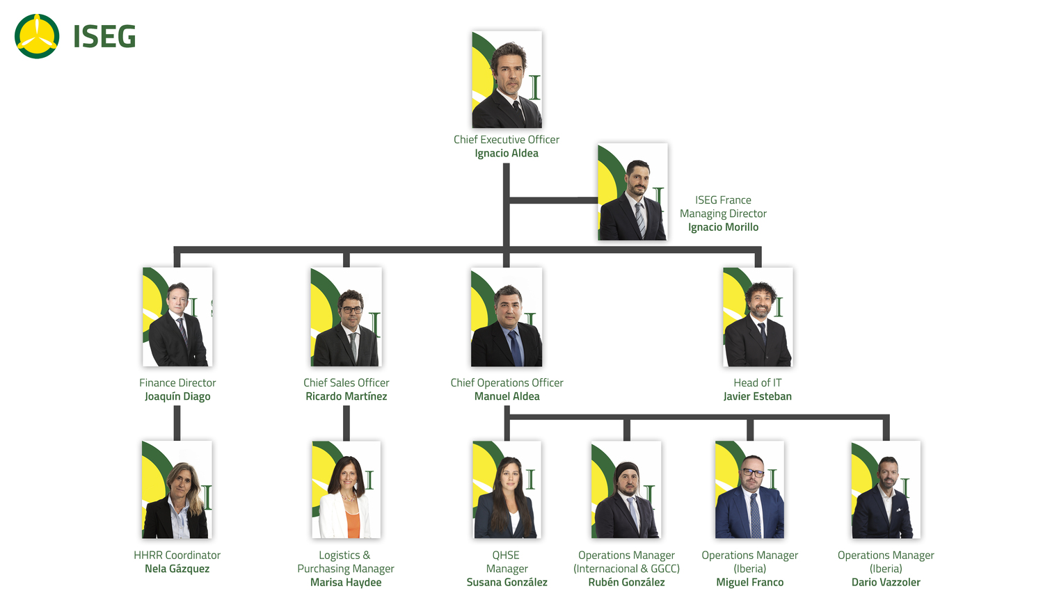 La estructura de ISEG se basa en 6 líneas de negocio principales implantadas desde la sede central a sus filiales y distintos centros de trabajo. El correcto desarrollo de las mismas es supervisado por la Dirección Ejecutiva de la compañía formada por cuatro miembros.